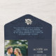 Célébrez votre histoire d'amour avec une élégance intemporelle en utilisant notre faire-part de mariage tout-en-un avec des fleurs de style vintage et une carte RSVP intégrée. Conçue en bleu marine profond et ornée de fleurs bleu poussiéreuses, ivoire et marron foncé, cette suite allie romantisme classique et fonctionnalité moderne. Le panneau extérieur introduit vos noms dans un script gothique de l'ancien monde, soutenu par de subtiles floraux monochromes et le charme moody. À l'intérieur, un modèle photo personnalisable vous permet de présenter votre photo fiançailles ou portrait mariage préférée, en regardant magnifiquement de derrière le bouquet floral à la base. À côté de votre photo, un message sincère de vos familles invitations invités à témoigner et bénir votre union. En bas, les clients trouveront une carte postale RSVP pratique pour déchirer. La carte comprend des cases à cocher pour accepter ou refuser et de la place pour noter le nombre de clients qui y assisteront. Avec votre adresse de retour imprimée au verso de la carte RSVP, il est aussi facile pour vos invités de répondre qu'il est beau de recevoir. Cette invitation est parfaite pour les couples qui veulent tout dans un design élégant et facile à envoyer - aucune enveloppe requise. Entièrement personnalisable : Remplacez la photo, les noms, la date, le lieu et le texte du message pour convenir à votre journée spéciale. #weddinginvitation #allinoneinvite #tearoffrsvp #navymariage #floralmariage #customphotoinvite #zazzlemariage #weddingstationery #bluenavyflorals #modernrusticmariage #