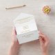 Cette belle faire-part de mariage en noir et or est parfaite pour une célébration sophistiquée et luxueuse. La luxueuse typographie or se distingue par son arrière - plan noir classique, créant un look intemporel et élégant. Le design monogrammed ajoute une touche unique qui montrera à vos invités à quel point votre grand jour est spécial. Cette invitation impressionne vos amis et votre famille, et sera un rappel durable de votre belle journée de mariage.