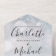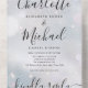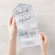 Invitation de mariage d'hiver tout-en-un avec un nom de script signature élégant et des initiales monogrammes. L'invitation comprend une carte RSVP perforée qui peut être adressée individuellement ou laissée vide pour que vous puissiez écrire à la main les coordonnées de votre invité. Conçu par Thisisnotme©