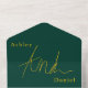Cet élégant faire-part de mariage vert et or est parfait pour un mariage moderne. le design simple comprend une élégante calligraphie dorée sur un arrière - plan vert.