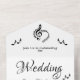 Design élégant pour un mariage à thème musical. Inclure le RSVP avec votre invitation comme carte postale pour des réponses simples et rapides. N'oubliez pas d'ajouter un timbre au RSVP de retour. Un design simple et élégant. Veuillez vérifier votre texte avant l'achat final.
