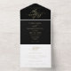 Invitation Tout En Un Élégante calligraphie or Mariage noir