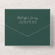 Le bord gauche de cette élégante faire-part de mariage tout-en-un moderne et RSVP présente une bordure en faux parties scintillant argentée. Le texte personnalisable combine écriture lunatique gris argenté, copperplate et polices italiques sur un arrière - plan vert émeraude. L'adresse de retour apparaît sur le rabat extérieur et sur le côté arrière de la carte RSVP détachable en gris argenté sur vert solide. Un code QR est inclus sur la carte RSVP pour les clients qui préfèrent répondre en ligne.