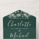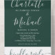 Le tout dans un faire-part de mariage avec de jolies lampes à cordes, un nom élégant de script signature et des initiales monogrammes sur un arrière - plan vert émeraude. L'invitation comprend une carte RSVP perforée qui peut être adressée individuellement ou laissée vide pour que vous puissiez écrire à la main les coordonnées de votre invité. Conçu par Thisisnotme©