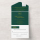 Invitation Tout En Un Émeraude verte minimale Monogramme or Mariage clas