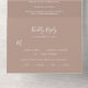 Ce mariage minimal neutre feuille tout en une seule invitation est parfait pour un mariage boho. Le design se compose d'une simple silhouette de feuille de verdure dans un ton naturel terreux avec un style bohème minimaliste du désert. Écrivez vos adresses d'invités à l'arrière de l'invitation pliée, ou achetez les autocollants de étiquette de adresse d'invités de coordination (vendus séparément).