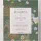 Découvrez le charme de la nature avec notre faire-part de mariage boho rustique, qui comprend des grappes délicates de fleurs sauvages séchés, pressés et fougères disposées sur un arrière - plan vert sage. Les zones de texte aux tons crème offrent un contraste doux pour vos détails, encadrés par la beauté organique des textures botaniques. Avec les initiales du couple élégamment affichées au sommet, ce design apporte une sensation romantique et terne à votre journée spéciale, parfait pour les mariages avec une touche naturelle et fantaisiste. Créé par Simply Farmhouse Press.