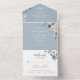 Invitation Tout En Un Fleurs Boho rustiques Script Hiver Dusty Bleu