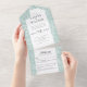 Invitation Tout En Un fleurs d'art blanc sur mariage turquoise
