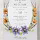 Le tout dans un faire-part de mariage à trois plis avec un arrangement de fleurs de printemps d'aquarelle ovale et de guirlande avec tulipes, clematis et forsythia, feuillage et brindilles. combinaison faire-part de mariage, carte rsvp et enveloppe. La carte de réponse est une carte perforée de déchirure rsvp avec choix de repas détaillés. Une solution moderne tout en un, pour empêcher la carte rsvp fermée de se retrouver accidentellement sous le réfrigérateur.