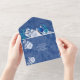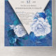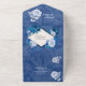 Invitation Tout En Un Fleurs de rose blanche sur papier motif bleu