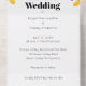 Ces invitations de mariage faciles à customiser en une seule offre un style rétro moderne avec des fleurs de marguerite hippie dans le jaune vif, bleu et rose fuchsia. Les graphismes dessinés à la main sont conçus pour imiter l'impression de style risographe classique. Le texte sur ces invitations est prêt pour votre touche personnalisée avec une impression noire simple contre un arrière - plan blanc propre.