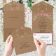 Invitation Tout En Un Fleurs roses de feuillage Brun clair Chic Mariage