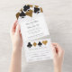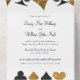 Ce tout en un faire-part de mariage pratique dispose d'une typographie élégante et d'un graphisme d'accent de combinaisons de cartes à jouer en noir et or fausse parties scintillant. Parfait pour un mariage de Las Vegas dans une petite chapelle au large de la bande, tout ce dont vous avez besoin est l'amour et un témoin ou deux !