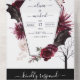 Halloween 31 Octobre Automne Automne Couleur d'eau foncée Bourgogne et Noir Mariage RSVP Invitations - comprend hantante et effrayante typographie de script élégant avec des Fleurs modernes, Araignées, Cobwebs et Bat Wings pour la célébration spéciale de mariage Déplaisant.