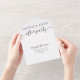 Étage moderne ou faire-part mariage privé et réception le tout dans une seule invitation. Customisez votre faire-part salon/mariage, invitation à la réception et choix de menu. "Happily Ever After Party" est écrit dans un mélange de typographie simple et d'un script élégant avec des swashes. Une carte postale RSVP détachée offre une réponse commode, écologique et sans enveloppe de la part de vos invités.