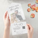Élégant elopement ou petit faire-part mariage et réception le tout dans une invitation à annoncer votre mariage à la famille et les amis et à les invitation à une fête de célébration post-mariage. "Happily Ever After Party" est écrit dans un mélange de typographie simple et d'un script chic avec des swashes. Votre photo est superposée avec votre faire-part d'elopement/mariage customisé et l'invitation de réception. entrez votre adresse URL de site mariage pour créer un code QR pour vos invités à scanner pour tous les détails et à RSVP en ligne. Une carte postale RSVP détachée offre une réponse commode, écologique et sans enveloppe de la part de vos invités.