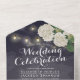 Faire-part de mariage moderne avec Modèle de carte postale RSVP détachable - Elégante Fleurs d'Hydrangée Blanche et Lumières à cordes sur Vintage Marine Blue Floral Linen Arrière - plan. Un design parfait pour votre grand jour. Tous les styles de texte, couleurs, tailles peuvent être modifiés selon vos besoins ! Ajoutez simplement vos noms, informations mariages, votre réponse par date, votre choix de repas et votre ou vos nom(s) et adresse de retour sur ce modèle facile à utiliser. Facile à retirer de la carte postale RSVP perforée. Il suffit de Plier chaque carte dans la forme esquissée, puis de sceller et d'envoyer, aucune enveloppe nécessaire pour l'expédition!