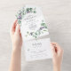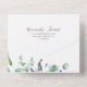 Cette lavande rustique et cette mariage eucalyptus, le tout dans une seule invitation, est parfait pour un mariage extérieur simple et élégant. Le design floral présente des feuilles d'eucalyptus aquarelle et de la verdure avec des sprigs de fleurs sauvages violets. Écrivez vos adresses d'invités à l'arrière de l'invitation pliée, ou achetez les autocollants de étiquette de adresse d'invités de coordination (vendus séparément).