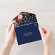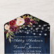 Mariage rustique, aquarelle Bourgogne Floral, Bleu Bois et String Lights Mariage All In One Invitation avec RSVP Card inclut des roses bordeaux, roses roses roses, roses rouges et verdure botanique.