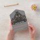Luxe et romance. Un cadre d'or noir, argenté et astucieusement dessiné, orné de délicates décorations en fibre. Ces détails affectueux donnent au design une touche opulente et enveloppent le spectateur d'un sentiment d'anticipation festive. Dans ce cadre magique, une femme se dévoile dans une robe mariage étonnante. Le design dégage une atmosphère d'exclusivité et de chaleur