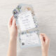 Votre journée de mariage est le reflet de votre style unique et de votre histoire d'amour. Ce faire-part de mariage moderne tout-en-un allie élégance contemporaine et charme bohème, avec un délicieux design de fleurs bohème bleu pâle qui séduira vos invités et donnera le ton pour votre journée spéciale. Les invitations de mariage tout-en-un sont à la fois belles et pratiques en combinant le faire-part de mariage avec une carte postale RSVP perforée facile à enlever. Ils sont aussi rapides et faciles à préparer pour l'envoi. Adressez-vous simplement à l'invitation, pliez le rabat arrière et scellez avec les autocollants clairs inclus. Une fois que vos invités reçoivent l'invitation préadressée, ils arrachent simplement la carte perforée RSVP et la déposez dans le courrier. L'ajout du code QR permet à vos invités d'accéder facilement à votre site mariage pour obtenir des informations, notamment les détails de la réception et les choix de dîner !