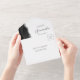 Le bord gauche de cette élégante faire-part de mariage tout-en-un moderne et RSVP est doté d'une bordure en aquarelle noire ornée d'une parties scintillant en faux argent. Le texte personnalisable combine écriture manuscrite grise au fusain, cuivre et polices italiques sur un arrière - plan blanc. L'adresse de retour apparaît sur le rabat extérieur et sur le côté arrière de la carte RSVP détachable en texte gris fusain sur blanc solide.