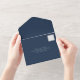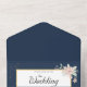 L'élégante mariage botanique tout en un faire-part de mariage et la carte RSVP sont décorées de fleurs d'aquarelle rose sur le thème de la pivoine sur un arrière - plan bleu marine et d'un ensemble sophistiqué de polices. Voir le lien de collection sur cette page pour plus d'inspiration.