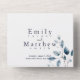 Notre "All-in-One Invitation & RSVP Card" de la dernière collection de Vintage Nordica - un choix parfait pour votre mariage rustique, boho ou jardin. Ce design pratique et 2 en 1 est particulièrement idéal pour do-it-yourself mariages, ce qui évite les tracas de la planification mariage. Insufflée de teintes apaisantes de vert et de bleu, la carte dégage un charme naturel et serein grâce à son aquarelle minimaliste. Des éléments botaniques délicats apportent une touche classique, s'insérant parfaitement dans tout thème mariage tout en se démarquant. Ne vous arrêtez pas aux invitations ! Nous vous encourageons à explorer le reste de la collection "Botanical Elegance" pour un ensemble complet et harmonieux de papeterie mariage. Des notes de remerciement aux étiquettes de retour, aux étiquettes cadeaux et aux boîtes de cadeaux de fête - nous avons tout couvert, assurant une esthétique cohésive qui laissera une impression durable.