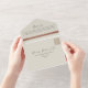Elégante, moderne boho, simple, contemporaine tonalités de terre neutre et invitation tout-en-un mariage en terre cuite, avec initiales géantes monogrammes et deux photos du couple. Ajoutez vos photos, détails mariages et rsvp.
