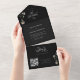 Cette invitation de mariage tout-en-un Fleurs Sauvages Boisées Fantaisistes comprend des fleurs sauvages aquarelles, un script tourbillonnant ludique et un design boho noir. L'invitation pliable en forme d'enveloppe est parfaite pour une expérience de scellement et d'envoi élégante avec une carte RSVP détachable et un code QR pour des réponses faciles. Elle combine charme et commodité, idéale pour une célébration rustique et fantaisiste.