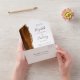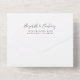 Le bord gauche de cette élégante faire-part de mariage tout-en-un moderne et RSVP est doté d'une bordure d'aquarelle orange brûlée, ornée d'une parties scintillant en faux or. Le texte personnalisable combine écriture manuscrite grise au fusain, cuivre et polices italiques sur un arrière - plan blanc. L'adresse de retour apparaît sur le rabat extérieur et sur le côté arrière de la carte RSVP détachable.