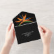 Elégant oiseau tropical de fleurs de paradis sur un arrière - plan noir accent ces invitations de mariage triplé avec vos détails en lettres chic dans les sections sur l'avant et l'arrière et une carte RSVP détachable pour les invités à compléter et revenir. **RAPPELEZ-VOUS de mettre un cachet sur la section carte RSVP et d'inclure des enveloppes sur votre commande pour envoyer des invitations! CORRESPONDRE des articles dans notre magasin.