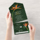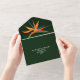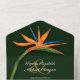 Elégant oiseau tropical de fleurs de paradis sur un arrière - plan vert foncé accent ces invitations de mariage triplé avec vos détails en lettres chic dans les sections sur l'avant et l'arrière et une carte RSVP détachable pour les invités à compléter et revenir. **RAPPELEZ-VOUS de mettre un cachet sur la section carte RSVP et d'inclure des enveloppes sur votre commande pour envoyer des invitations! CORRESPONDRE des articles dans notre magasin.