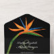 Elégant oiseau tropical de fleurs de paradis sur un arrière - plan noir accent ces invitations de mariage triplé avec vos détails en lettres chic dans les sections sur l'avant et l'arrière et une carte RSVP détachable pour les invités à compléter et revenir. **RAPPELEZ-VOUS de mettre un cachet sur la section carte RSVP et d'inclure des enveloppes sur votre commande pour envoyer des invitations! CORRESPONDRE des articles dans notre magasin.