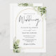 Cette élégante faire-part de mariage d'arche en or de verdure botanique peut être personnalisée avec vos informations dans la typographie chic avec toutes vos informations spéciales de jour de mariage sur le verso, y compris votre RSVP, l'hébergement, et des détails supplémentaires. Conçu par Thisisnotme©. Conçu par Thisisnotme©