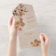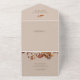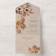 Cette élégante faire-part de mariage tout-en-un présente des feuilles d'aquarelle peints à la main, orange brûlé et en terre cuite, des dahlias crème et beige, et de beaux roses couleur rouille sur un taupe | arrière - plan beige. RSVP avec choix de repas est inclus avec cet invitation élégant. Trouvez les articles correspondants dans la collection Taupe Autumn Romance.