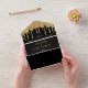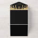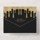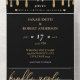Parties scintillant noire et or goutte dans le tout en un seul faire-part de mariage. Personnalisez-le avec vos détails d'événement et votre code QR de registre mariage.