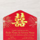 Red/Gold Double Happiness Fireworks Mariage Contenu écrit en anglais et en chinois. Le contenu en anglais et en chinois est rédigé dans un format de faire-part de mariage approprié. Le double bonheur (shuang xi) est un symbole traditionnel qui se révèle être un bon symbole utilisé par tous les mariages chinois. Le double symbole de bonheur peut être supprimé, la couleur arrière - plan peut être changée à n'importe quelle couleur de votre choix dans la page de personnalisation du produit.