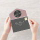 Unique, minimaliste, moderne, contemporaine rose poussiéreuse simpliste, tout-en-un noir et blanc avec code QR, monogramme avec couple d'amoureux dessiné à la main, script manuscrit tendance et image personnalisée de l'arrière. Ajoutez votre photo, les détails du mariage et rsvp.