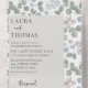 Laissez-vous inspirer par ce design d'aquarelle rustique. Doté d'eucalyptus vert sauge avec une touche de rose poussiéreux disposés en motif. Cette invitation est une excellente façon d'envoyer tous vos détails dans un format facile à utiliser. Tout ce que vous avez à faire est de modifier le texte à vos exigences personnelles, puis vous invité peut détacher les informations rsvp et renvoyer. Si facile et pratique.
