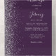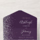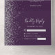 Le bord gauche de cette élégante faire-part de mariage tout-en-un moderne et RSVP présente une bordure en faux parties scintillant argentée. Le texte personnalisable combine écriture lunatique gris argenté, copperplate et italique sur un arrière - plan violet foncé. L'adresse de retour apparaît sur le rabat extérieur et sur le côté arrière de la carte RSVP détachable en gris argenté sur violet foncé solide.