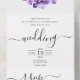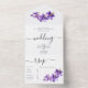 Invitation Tout En Un Mariage de script blanc et violet orchidée