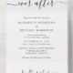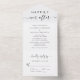 Mariage moderne tout en une invitation avec "Happily Ever After" écrit dans un mélange de typographie simple et un script chic avec des swashes et votre invitation dans une typographie élégante. Une carte postale RSVP détachée fournit une réponse pratique sans enveloppe de vos invités.