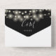 Le tout dans un faire-part de mariage avec de jolies lumières à cordes, un nom élégant de script signature et des initiales monogrammes sur un arrière - plan noir. L'invitation comprend une carte RSVP perforée qui peut être adressée individuellement ou laissée vide pour que vous puissiez écrire à la main les coordonnées de votre invité. Conçu par Thisisnotme©