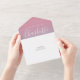 Le tout dans un faire-part de mariage avec un élégant nom de script signature et des initiales monogrammes sur un arrière - plan sombre rose et bleu poussiéreux. L'invitation comprend une carte RSVP perforée qui peut être adressée individuellement ou laissée vide pour que vous puissiez écrire à la main les coordonnées de votre invité. Conçu par Thisisnotme©