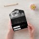 Tout cela en un seul faire-part de mariage est parfait pour votre journée spéciale. Il comprend non seulement le faire-part de mariage pour vos invités, mais aussi une section pour vos détails mariages, RSVP, incluant un choix de menu et une section pour une belle image du couple heureux. Dans la section personnaliser, vous pourrez rogner votre photo et l'ajuster pour obtenir l'ajustement parfait, changer les couleurs et le style des polices et customiser l'arrière - plan. Nous avons conçu tout cela en une seule invitation à utiliser avec des enveloppes, cependant, si vous préférez envoyer cette invitation sans enveloppe, veuillez supprimer le libellé et l'image de la section de détail au dos, en laissant vide pour ajouter une adresse de destinataire. Si vous désirez de l'aide ou des changements apportés à la conception, veuillez nous contacter et nous serons là pour vous aider.