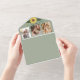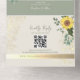 Lumineuse et rustique, cette faire-part de mariage tout-en-un de tournesol et d'eucalyptus apporte une chaleur joyeuse à votre journée spéciale. Avec des tournesols jaunes vibrants, des branches dorées et des accents verts doux sur un arrière - plan sage, ce design comprend de l'espace pour 3 photos personnelles et un code QR pour RSVP. Aucune enveloppe n'est nécessaire : il suffit de personnaliser, sceller et envoyer pour une expérience d'invitation charmante et efficace.