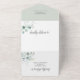 Imaginez une faire-part de mariage tout-en-un qui incarne à merveille un thème botanique, créant un mélange harmonieux de nature et d'élégance. L'invitation s'ouvre à révéler un bouquet captivant d'eucalyptus et de feuilles, capturant l'essence d'un jardin luxuriant. Des calligraphies délicates ornent les titres, ajoutant un air de grâce et de romance au design. Les informations textuelles, présentées dans une police serif intemporelle, assurent clarté et sophistication tout au long de l'invitation. Sur fond de blanc pur, cette invitation dégage un sentiment de pureté et de pureté, ouvrant la voie à une célébration spéciale. L'inclusion réfléchie d'une carte RSVP simplifie le processus de réponse, tandis que d'autres sections fournissent des détails essentiels tels que les chambres et les itinéraires, ce qui en fait un forfait commode et complet pour vos invités. Cette faire-part de mariage botanique tout-en-un promet une célébration harmonieuse, où la beauté de la nature se mêle harmonieusement à l'élégance de l'occasion.