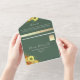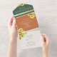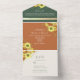 Elégante, rustique, brûlée terre cuite orange et vert émeraude tout-en-un faire-part de mariage avec tournesol et photo personnalisée du couple à l'arrière. Un design parfait pour les mariages de automne contemporains ! Ajoutez votre photo, les détails du mariage et rsvp.